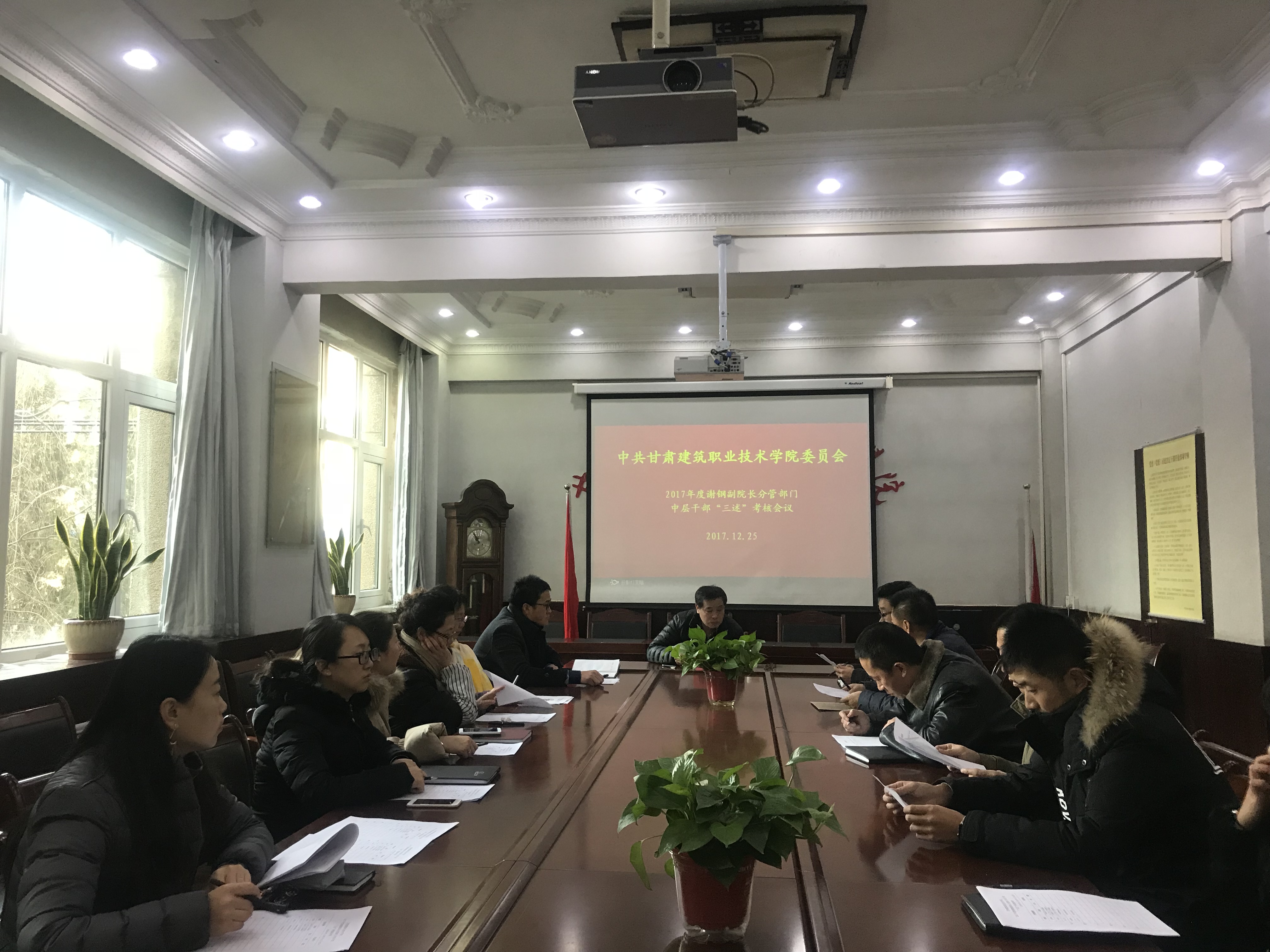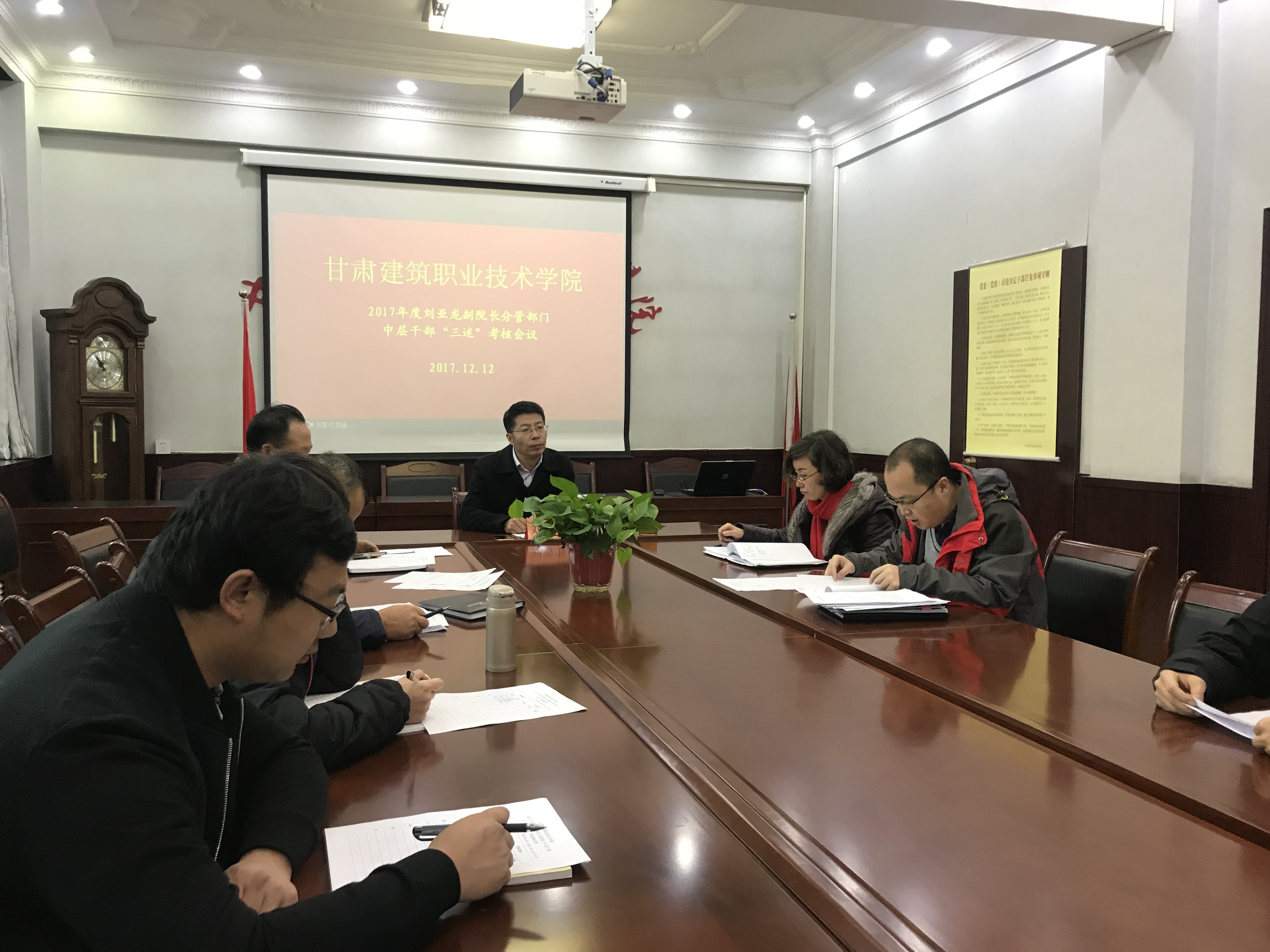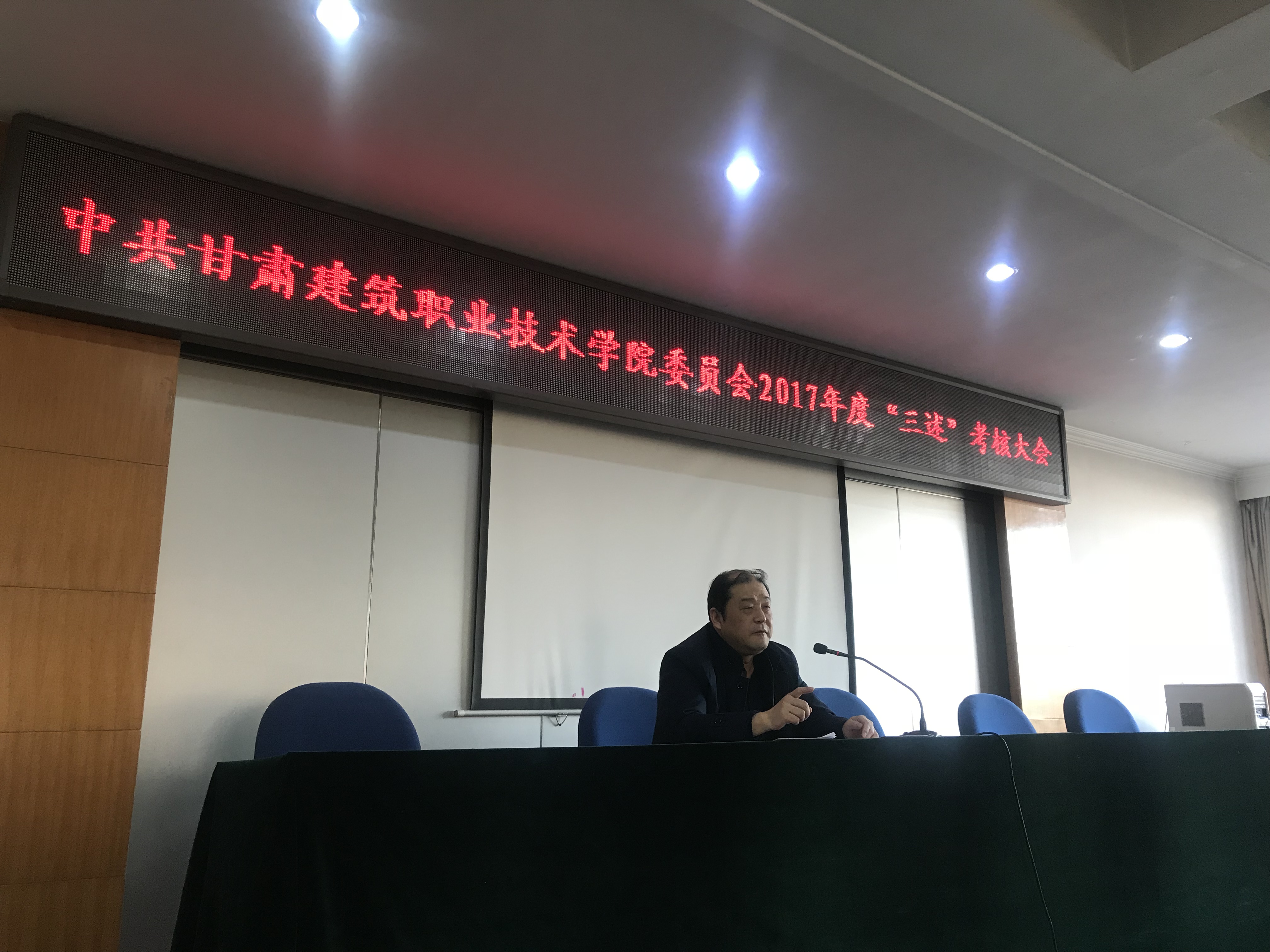 2017年 12月26日,甘肃建筑职业技术学院会召开2017年度学院中层干部“三述”考核大会。纪委书记王继伟主持大会,副院长谢钢、刘亚龙及100余名中层干部、各“三述”人员所在部门的教职工参加了大会。