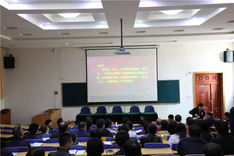 王继伟同志传达了省教育厅纪检组长雷江红同志在《2018年全省教育系统党风廉政建设暨纪检工作会议上的讲话》;通报了省直属机关纪委关于省直机关处级党员干部违纪违法问题典型案例,要求我院全体党员干部以此为戒,以党的十九大精神和习近平新时代中国特色社会主义思想为指导,认真抓好中央和省上相关会议精神以及学院党委的各项工作的贯彻落实和部署安排,着力构建“抓住关键少数、坚持问题导向、聚焦查找不足、分级分层实施”的工作格局,全力营造风清气正的育人环境,为学院教育事业持续发展提供坚强的纪律保障。 王书记从以下四个方面对深入推进我院2018年党风廉政建设工作做了安排。一是2018年为学院全体中层干部建立廉政档案;二是严格贯彻落实中央八项规定,严格执行学院党委制定的《甘肃建筑职业技术学院关于规范党员干部个人家庭婚丧喜庆等事宜暂行办法》;三是坚持问题导向,深入开展校内巡察工作,对各系、部、处、室严格落实《2018年党风廉政建设任务分解书》所安排的各项任务进行严格考核;四是聚焦主责主业,持续深化“三转”。 学院党委书记、院长田树涛作了重要讲话,他指出,学院领导干部要切实统一思想,提高政治站位;强化责任担当,狠抓“关键少数”,坚决反对和纠正“四风”;要狠抓作风建设,严格落实中央八项规定。同时,田书记引借 “折达公路考勒隧道安全隐患整改不落实”的事件讲到:“希望大家倍加珍惜肩上的职责,倍加珍惜在各自岗位上干事创业的机会,坚决把纪律和规矩挺在前面,知止慎独、廉洁修身、干净做人、干净做事,发挥模范带头作用,以时不我待、只争朝夕的精神投入工作,深入贯彻党的十九大精神和习近平新时代中国特色社会主义思想,切实履行全面从严治党职责使命,不负嘱托,不辜所盼,为推进学院各项工作再上新水平而努力奋斗。”