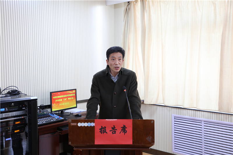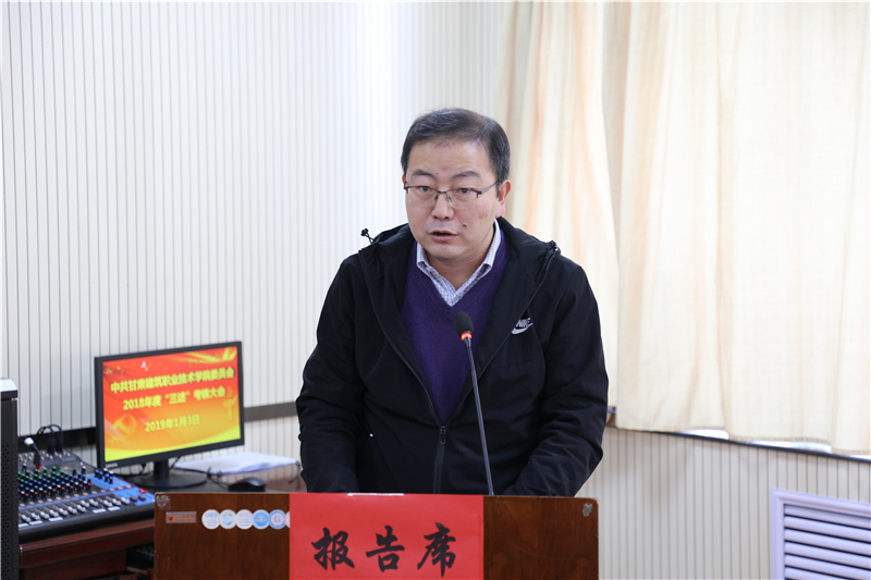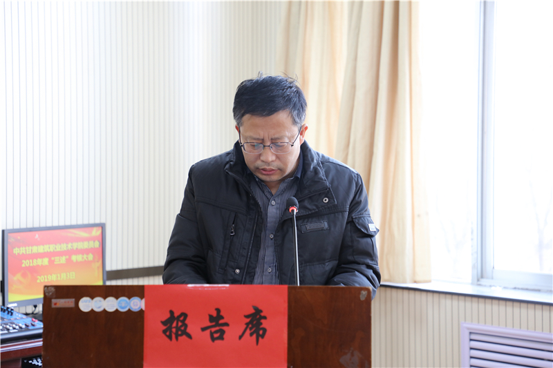 1月3日,中共甘肃建筑职业技术学院委员会召开了2018年“三述”考核大会。10位中层干部在会上做了“三述”报告,学院党委副书记、纪委书记王继伟主持大会,副院长刘亚龙及中层干部和部分教职工代表参加了考核大会。