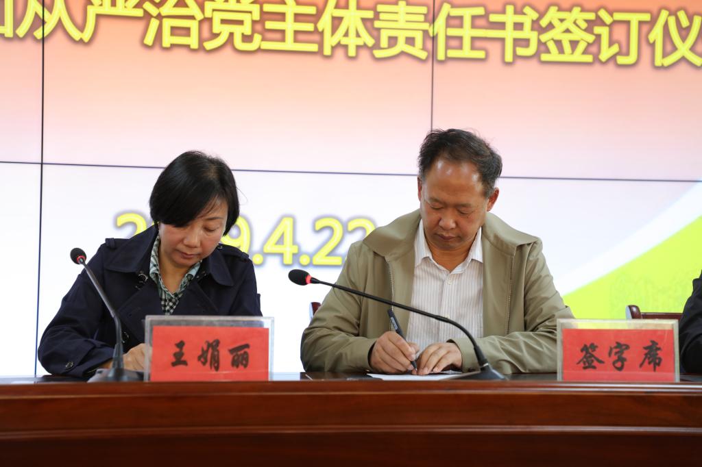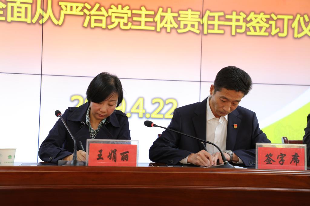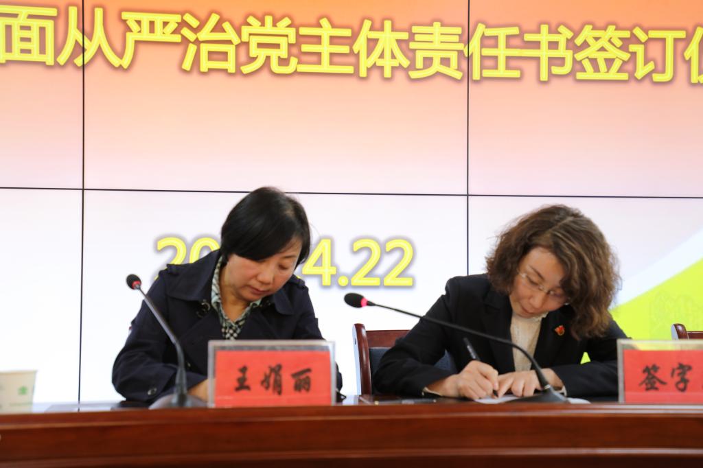 随后,学院党委书记、院长王娟丽与相关部门负责人签署了《全面从严治党主体责任书》,与全体中层干部签订《廉洁自律承诺书》。