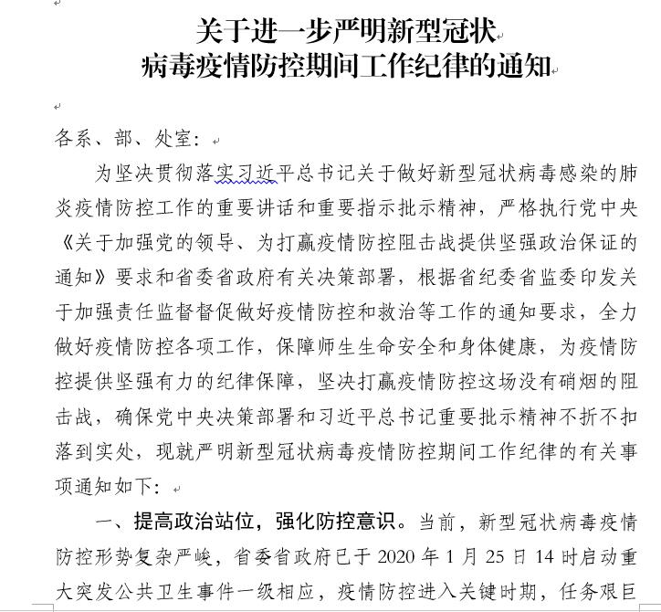 关于进一步严明新型冠状病毒疫情防控期间工作纪律的通知