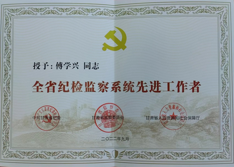 “雷厉风行、敢于担当、善于作为……”大家都这样评价他,18年的军旅生涯和17年的纪检监察工作经历,锻造了他过硬的作风、坚强的意志和乐于奉献的品质。他先后6次荣立三等功、30余次受到各级表彰,他就是“全省纪检监察先进工作者”白银市纪委副书记、监委副主任傅学兴。