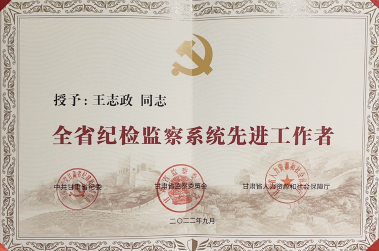 在酒泉市纪委监委反腐一线,飘扬着一面旗帜。他政治素养高,业务能力过硬,用无限忠诚和辛勤汗水诠释着肩负的责任与使命、践行着“忠诚干净担当”的誓言,他就是市纪委监委第四监督检查室主任王志政。去年9月,他被授予“全省纪检监察系统先进工作者”荣誉称号。